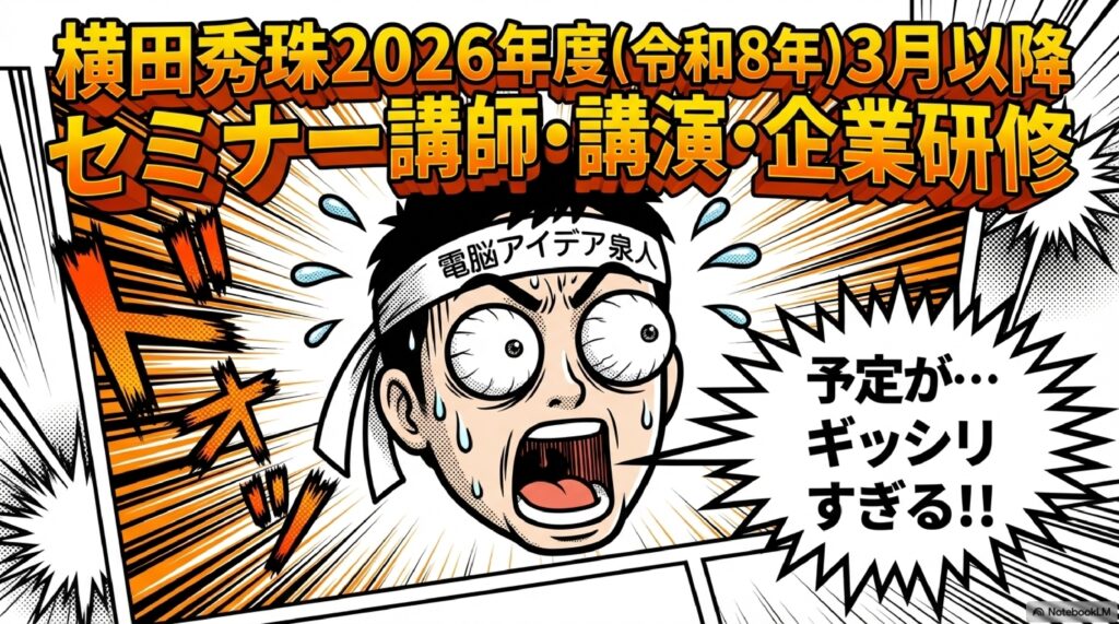 横田秀珠2026年度(令和8年)3月以降セミナー講師・講演・企業研修