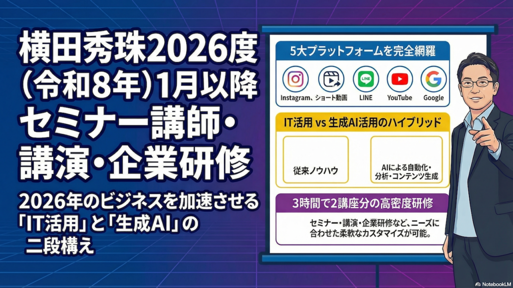 今回ご紹介した「ネットビジネス研究会」の新しいセミナー企画は、SNSマーケティングと生成AI活用を融合させた、まさに2026年のデジタルマーケティングの最前線を体系的に学べる内容となっています。Instagram、ショート動画(TikTok)、LINE公式アカウント、YouTube、Googleという5つの主要プラットフォームについて、それぞれ従来のIT活用手法と最新の生成AI活用手法を学ぶことができる全10コマ・20時間分のカリキュラムは、ビジネスの成長を加速させる強力な武器となるでしょう。