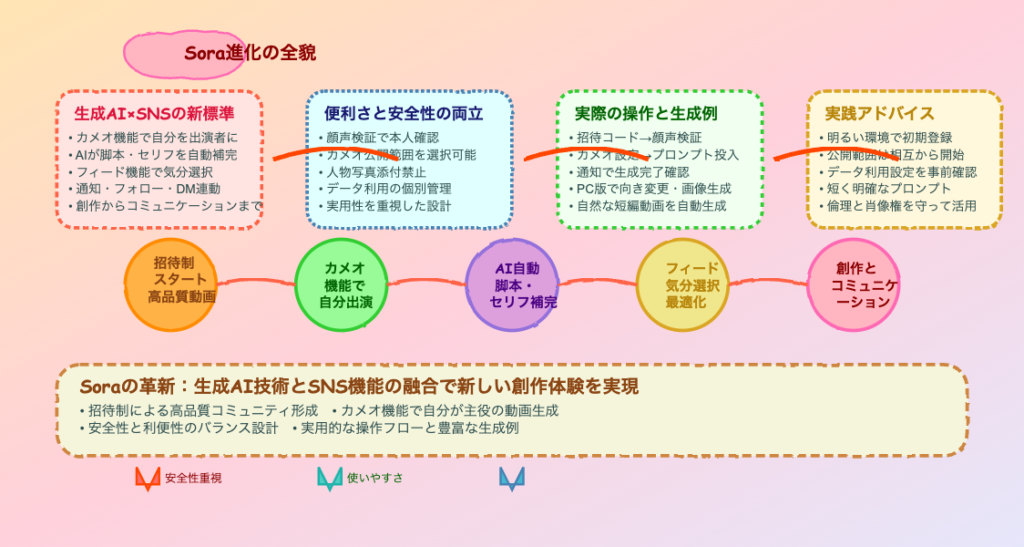 招待制と専用アプリの導入は、OpenAIが生成AIを単なる高性能な制作ツールとしてではなく、コンテンツ流通のインフラとして位置づけ、市場を支配しようとする明確な戦略的意図を反映しています。短時間での動画生成とSNS連携は、クリエイターやファン層の新たな表現機会を開くことを狙っています 。