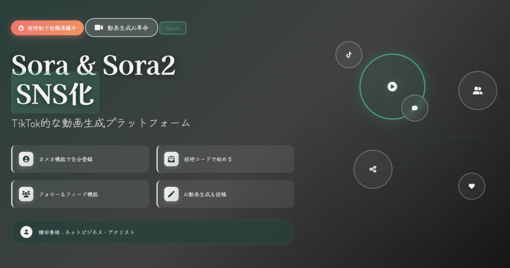- SNS機能が凄い!Sora2の使い方と動画生成の実演