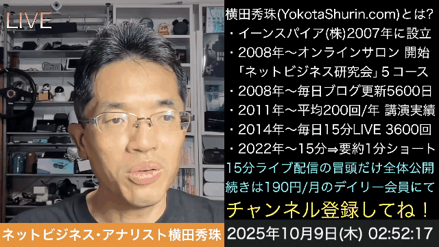 「横田しゅうりんさん、セミナー面白かったと絶賛している動画にして」