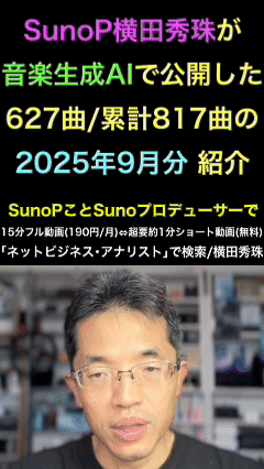 SunoP横田秀珠が音楽生成AI「Suno」627曲/817曲2025年9月分
