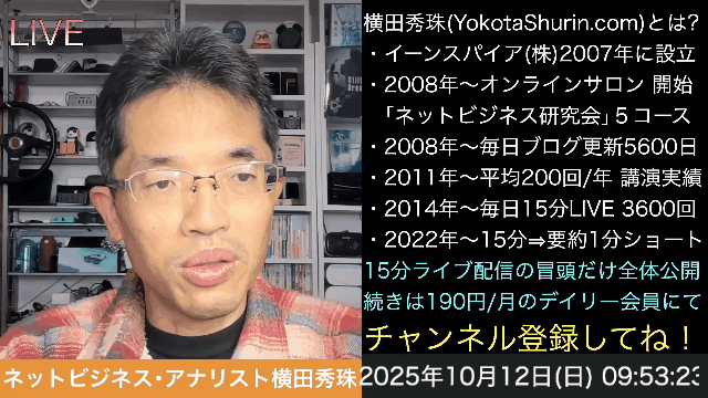 配信者: ネットビジネス・アナリスト 横田秀珠