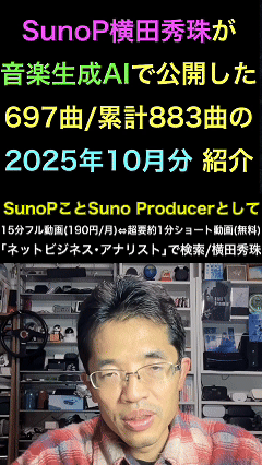 SunoP横田秀珠:音楽生成AI「Suno」697曲/883曲2025年10月分