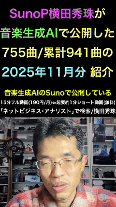 SunoP横田秀珠:音楽生成AI「Suno」755曲/941曲2025年11月分