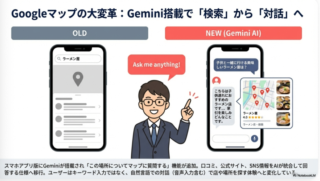 4️⃣ Googleマップ: Gemini搭載、動画優遇、MEO新常識