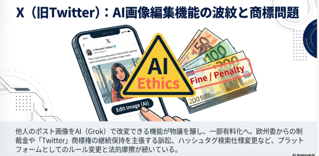 2️⃣ X: AI画像編集問題、商標権強化、巨額制裁金