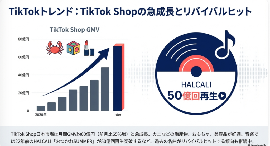 そして日本においては「TikTok Shop」の今、ローンチ6か月で累計流通総額は推計155億円。12月度は約60億円で前月比65%増、平均販売単価は2528円。TikTok Shop、4ヶ月で取引総額が20倍になってるということ、20倍になったとしても大したことなくて、例えば日清食品さんでも売上がわずか103万円しかなかったりとかしてですね、TikTok Shopで米の販売が急伸 ライブ配信で安心感。まだまだだって話なんだけど、この辺もアンケート結果出てるのでぜひ見といてください。ということでなニュースが入ってます。TikTok、ブラジルに中南米初のデータセンター建設へってことですが入ってます。