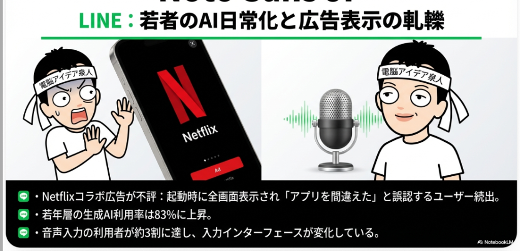 2:05 💬 LINEニュース(音声入力・広告表示・若年層生成AI利用)