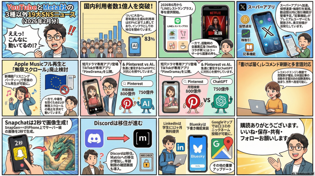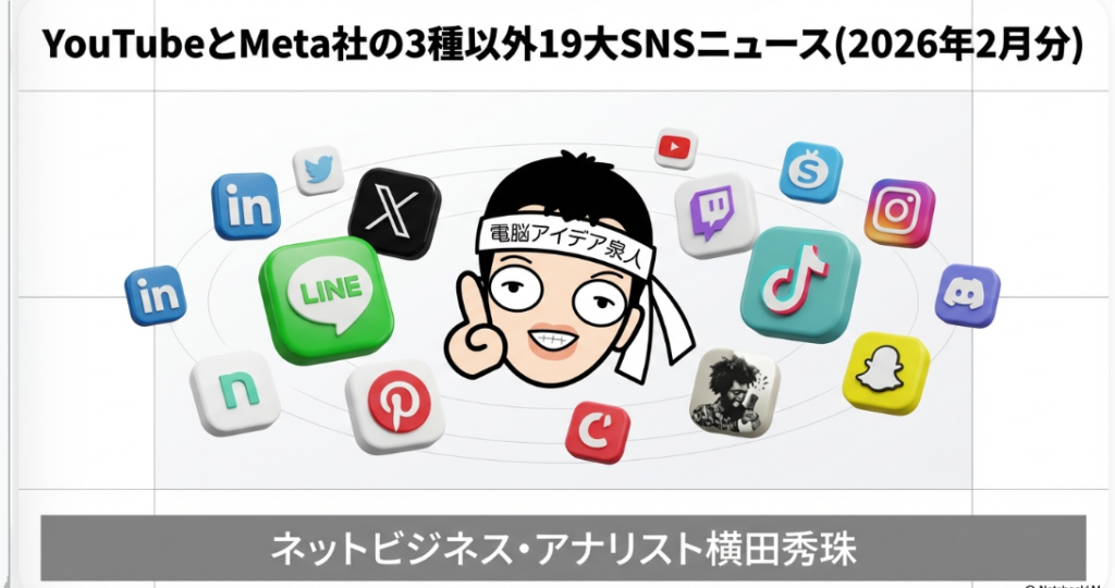 YouTubeとMeta社の3種以外19大SNSニュース(2026年2月分)