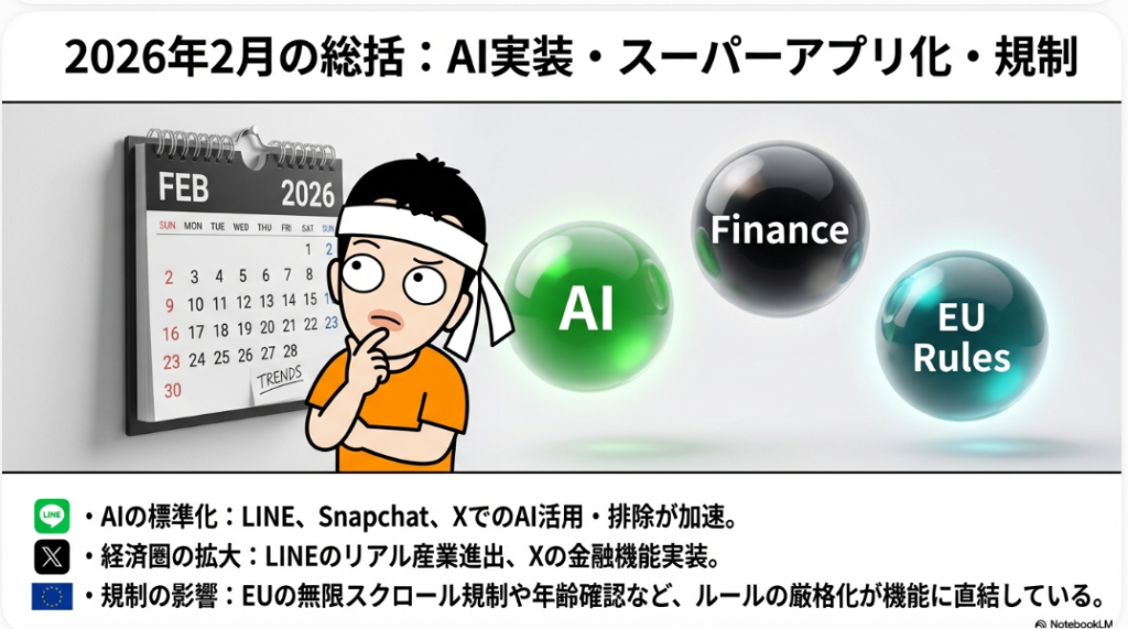 ネットビジネス・アナリストとして日々の動向を追跡してきた立場から断言する。2026年2月、SNS市場は単なる「情報の拡散場」から「生活・経済インフラ」へとその役割を完全に変容させた。現在起きているのは、プラットフォームの**「インフラ化」と「バーティカルな機能特化」**という二極化の加速である。