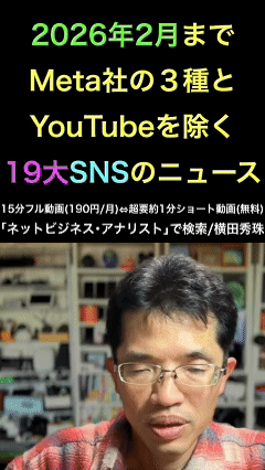#横田秀珠 #Xニュース #TikTokニュース #mixi2ニュース #LINEニュース #Pinterestニュース #BeRealニュース #Blueskyニュース #noteニュース #Eightニュース #SnapChatニュース #Jiffcyニュース