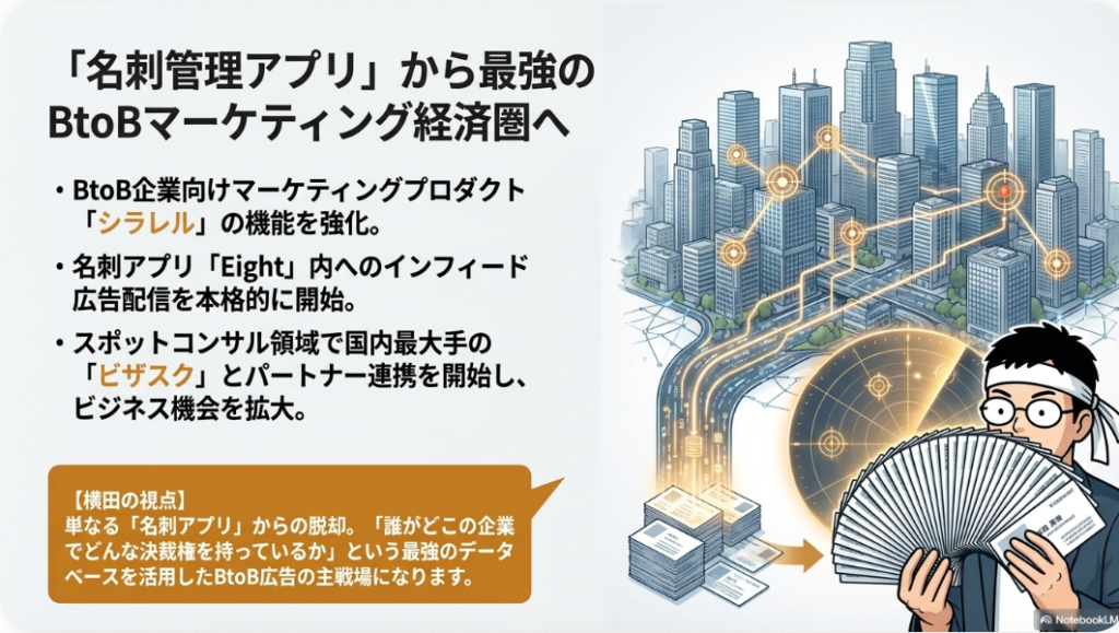 はい、Eightも同じですね。大きいニュースは入ってないんですけど。連携の話ですね。いろんな企業との連携の話が入ってるっていうぐらいですね。