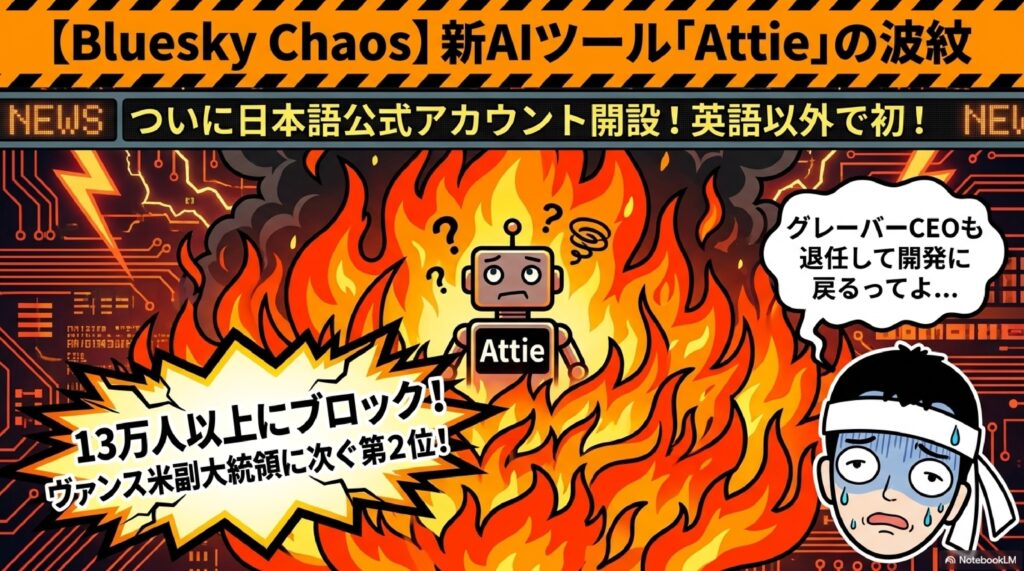 はい、そしてBlueskyも若干変更ありました。日本公式アカウントが開設されるという話が入ってますね。はい、そんな感じでしょうか? あとはAIとの対話でカスタムフィードを作るという新アプリAttieが招待制で提供開始というニュースも入っています。これまた別のアプリの話ですね。
