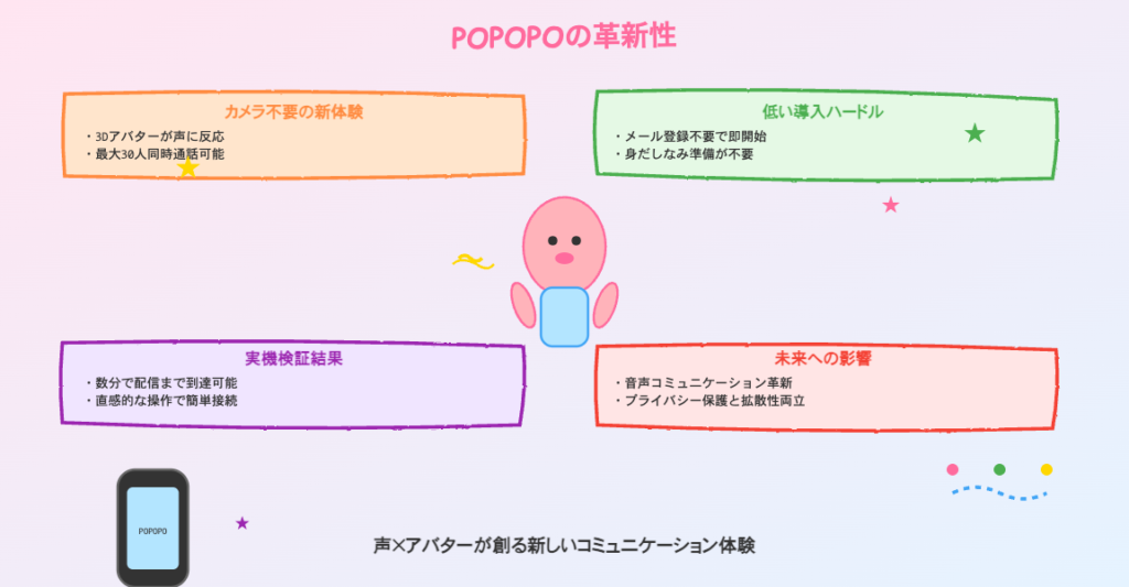 - POPOPOの特徴と魅力 ── カメラ不要のアバター通話とライブ配信機能