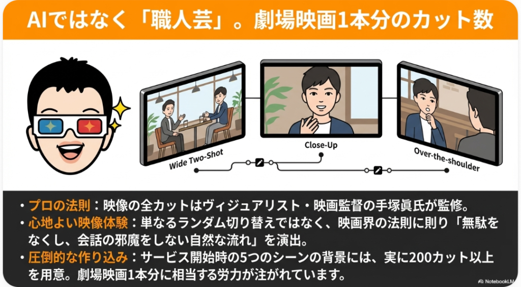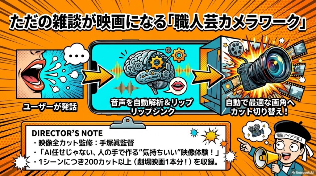 ✅ 映画風シーンで没入感のある会話