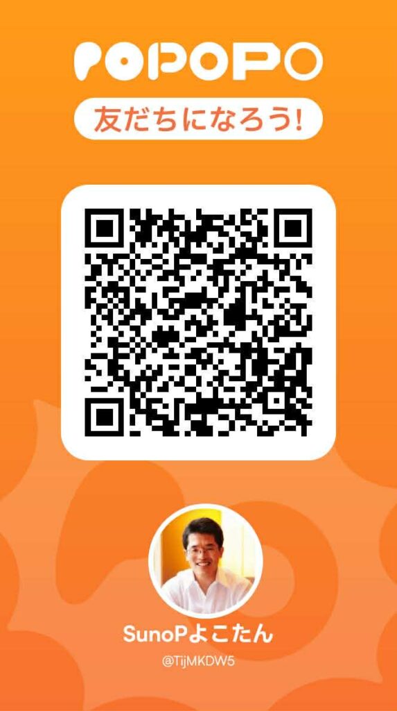 次に、「あなたの名前を入れてください」という画面になります。名前は後で変えられるとのことなので、気軽に設定してOKです。今回は「SunoPよこたん」という名前にしてみました。なぜこの名前かというと、今、音楽生成AIのSunoでビデオポッドキャストをやっていて、POPOPOでも同じような活動ができるかなと思ったからです。