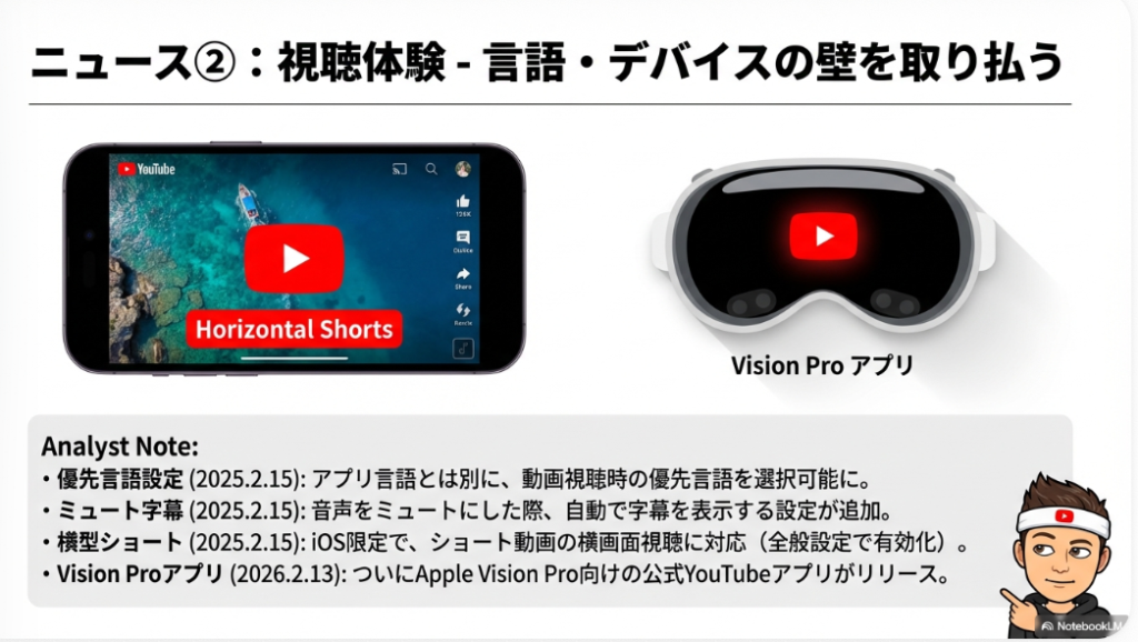 • UXの最適化(サイレント消費への適応): 「ミュート中の字幕表示」機能の追加は、移動中などの「音が出せない環境」での視聴を前提としたUX設計を企業に求めています。
