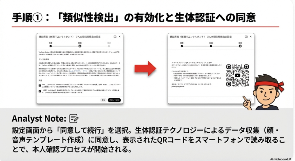 • 「So What?」:効率化と「信頼の証明」の両立 AI生成コンテンツの氾濫に対し、YouTubeは「類似性検出」による生体認証プロセスを強化しました。企業がAIクローンを活用する際は、**政府機関発行の身分証明書と5秒間の自撮り動画による本人確認(承認まで最大5日間、データ3年保持)**が必須となります。AIによる「効率」を享受しつつ、プラットフォーム側の認証をクリアして「ブランドの真実性」を担保することが、2026年度のブランドガードレールの根幹となります。