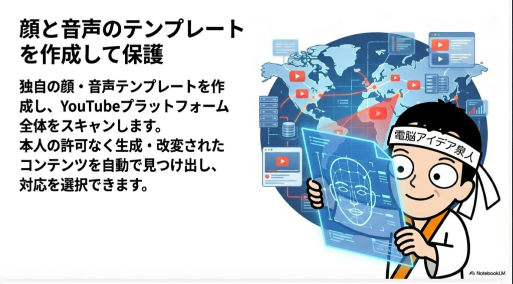 AI で生成・改変された「あなたの肖像や声」を使った動画をYouTube全体で自動検出する機能