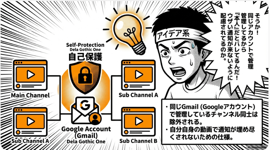 🔬 2026年2月25日時点でライブ実験を試みたが、同一人物管理の別チャンネルには反応しないことが判明。メールアドレスが異なっていても「同じ人が管理している」とYouTubeが紐付けると検出対象外になる模様。