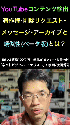 #YouTubeコンテンツ検出 #YouTube類似性検出 #横田秀珠 #YouTubeセミナー #YouTubeコンサルタント #YouTube講座 #YouTube講習 #YouTube講演 #YouTube講師 #YouTube研修 #YouTube勉強会 #YouTube講習会
