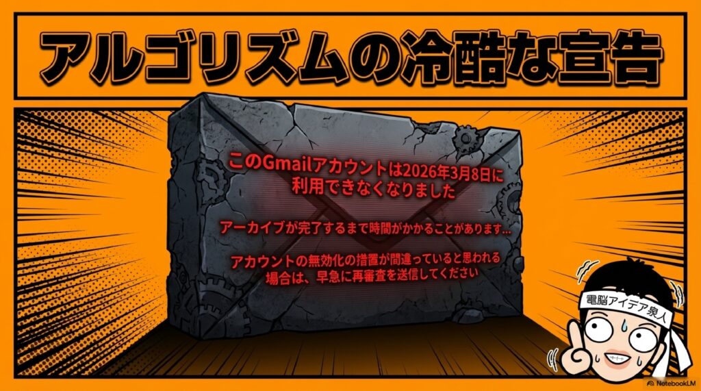 「このGmailアカウントは2026年3月8日に利用できなくなりました」