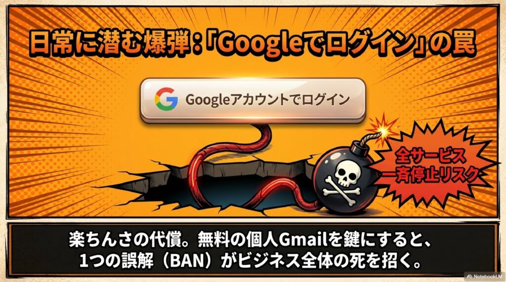 - Googleアカウントでログインは便利だが危険 — BANされると紐づいた全サービスが停止する可能性