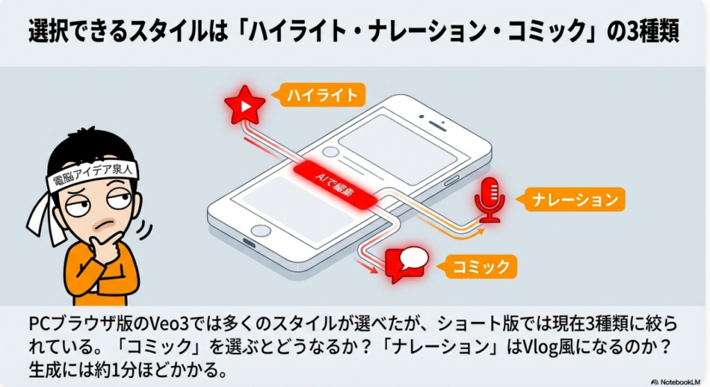 4:26 🎨 編集スタイル(ハイライト・ナレーション・コミック)の選択